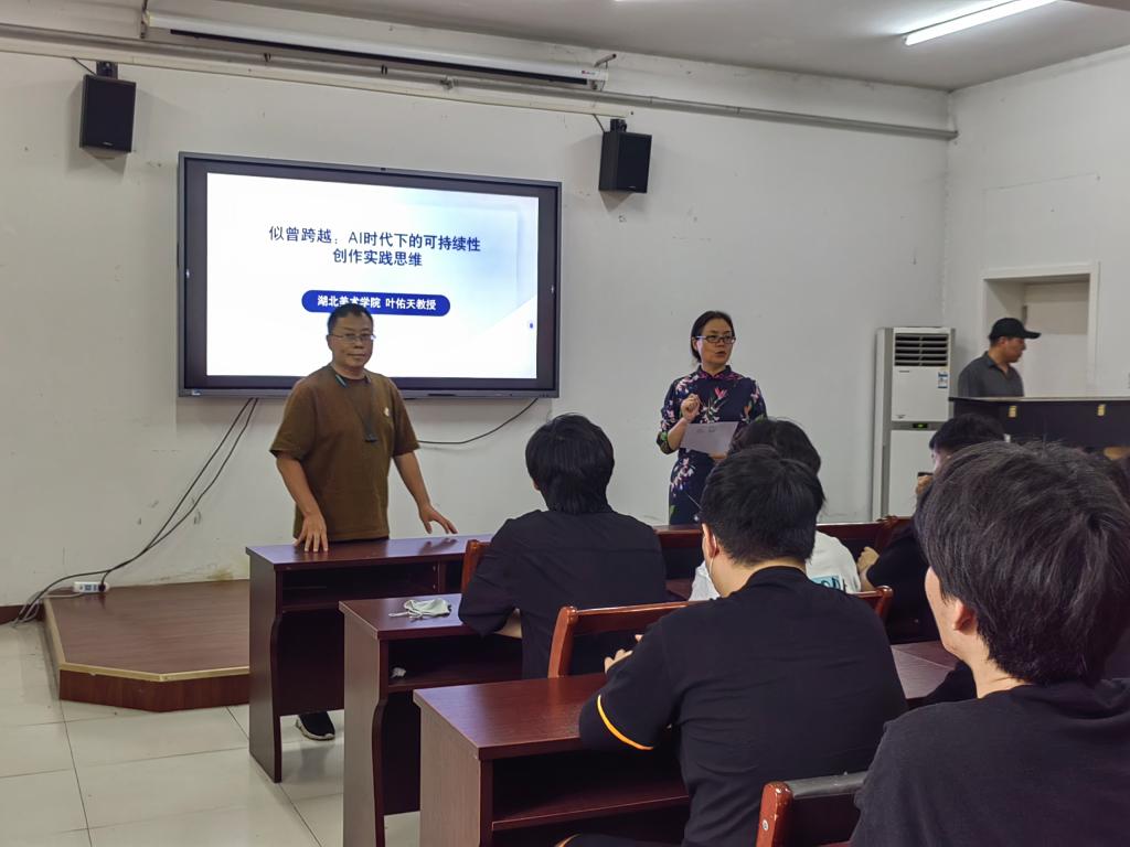 6月7日下午,湖北美术公司叶佑天教授应邀太阳成集团tyc33455cc官网作题为《似曾跨越——AI时代下的可持续性创作实践思维》的专题讲座,讲座由太阳成集团tyc33455cc官网经理聂书法主持,公司70余名师生到场聆听学习。