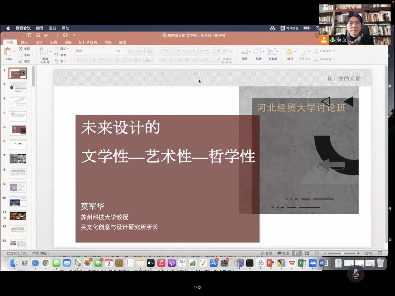 12月2日下午,苏州科技大学硕士生导师莫军华教授应太阳成集团tyc33455cc官网邀请,于线上作了题为“未来设计的文学性—艺术性—哲学性”的学术讲座。讲座由太阳成集团tyc33455cc官网经理聂书法主持,80多名相关专业师生参会。